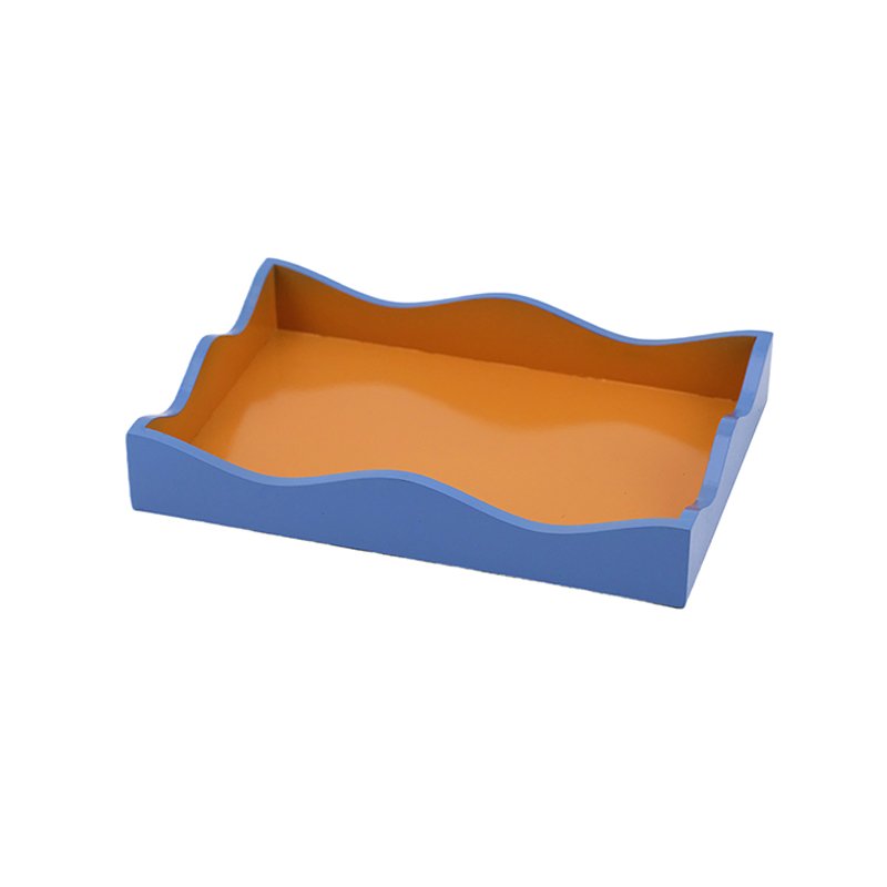 Home - HOME DECOR - Tray - Modern Blue and Orange Lacquer Decorative Tray, Curved Wavy Edge Jewelry Tray, Stylish Bathtub Tray or Coffee Table Tray for Home Décor