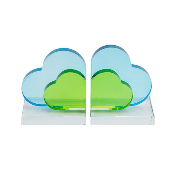- ★Unique Cloud Shape Design — Crafted from high-quality acrylic, this bookend features a creative blue and green cloud-shaped design that combines transparency with playfulness. The rounded edges and vivid colors make it a stunning ornament in any space.