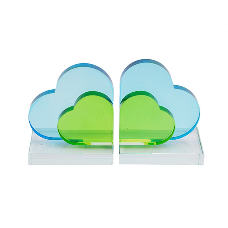 Modern Cloud Shape Acrylic Bookends, Blue and Green Transparent Decorative Ornament, Luxury Home Decor Book Holder for Living Room or Office