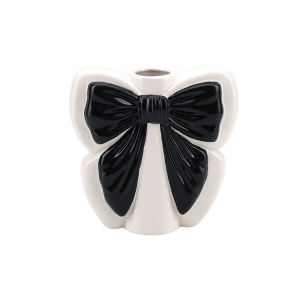 - ★Unique Black and White Bowknot Silhouette with Smooth Ceramic Material: This Vase features a cute and three-dimensional bowknot silhouette, designed to resemble a wide, draped ribbon bow. The main body is made of smooth white ceramic, while the central knot and folds utilize a high-gloss black glaze, creating a chic and striking visual effect through the color contrast. The opening is small and located at the center top of the bow. With its stable base and plump, rounded lines, this piece is a highly decorative and artistic Ceramic Vase.