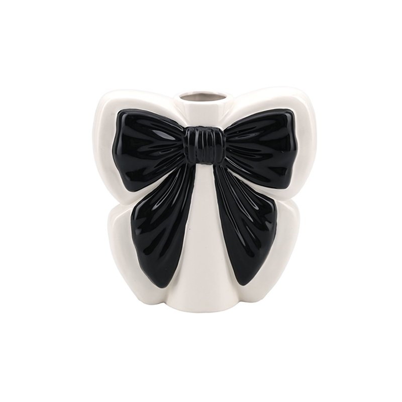 Home - HOME DECOR - Vase - Modern Cute Black and White Bowknot Shaped Ceramic Vase, Small Caliber Flower Vase, Delicate Desktop Decorative Vase, Girly Home Decor Art Piece