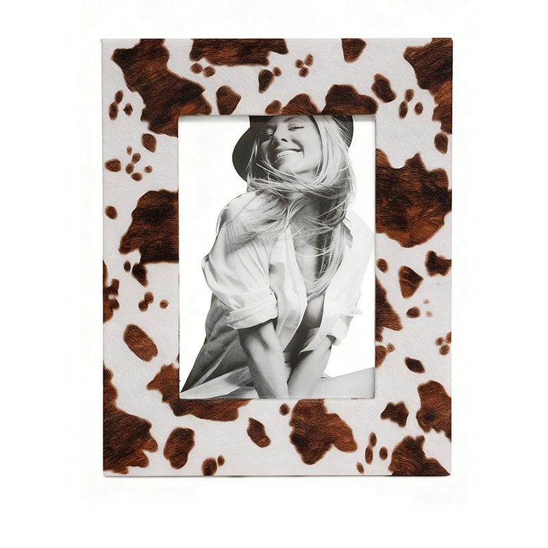 - ★Unique Cow Print Design & Delicate Faux-Leather Appearance Features- This piece stands out with its modern cow print texture, perfectly mimicking the wild and pure beauty of real leather. The photo frame features a creamy white base as its background, artfully scattered with irregular deep brown spots of varying shades, giving the product a distinct visual hierarchy and dynamic vitality. Designed in a structured vertical rectangular silhouette with crisp, fluid edges, its fine faux-leather touch allows it to exude a trendy, natural style from every viewing angle.