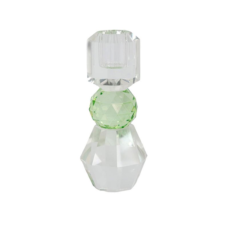 - ★Unique Geometric Spliced Structure & Multi-Colored Crystal Aesthetics- This candle holder (Item No. 143-068) demonstrates a high level of artistic design in its visual construction: it consists of three differently shaped geometric crystals vertically spliced together. The top is a pure transparent octagonal prismatic candle bowl, the middle features an exquisite light green multi-faceted sphere, and the base is supported by a large transparent polyhedral conical pedestal. This interweaving of transparency and color, along with the collision of straight and curved lines, gives the product a strong sculptural texture, perfectly interpreting the sensory art of modern light luxury.