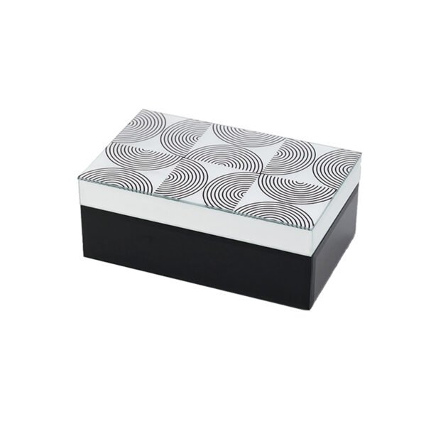 Modern Geometric Pattern Glass Decorative Box, 21x13x8.5cm Stylish Storage Organizer for Jewelry/Trinkets, Black & White Artistic Accent Piece for Home Decor