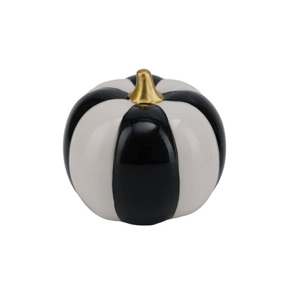 • Distinctive Visual Aesthetics & Exquisite Details- This pumpkin figurine showcases a perfect blend of modern design and natural forms, with its most striking feature being the bold and crisp black-and-white vertical stripes covering the body, creating an impactful visual contrast. The top is adorned with a gleaming metallic gold stem, whose irregular natural form contrasts beautifully with the structured stripes, adding a touch of opulent artistic flair to the overall design. The surface is meticulously polished for a smooth touch and uniform luster, making it an exceptionally sophisticated tabletop ornament from every angle.