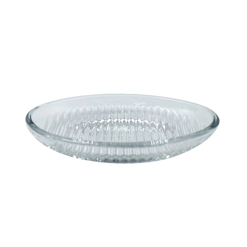 • Unique Oval Vertical Ribbed Clear Glass Dish: This soap dish features an oval shallow dish design, entirely crafted from highly transparent, thick glass. The central depression and edges of the dish are uniformly lined with vertical raised ribs, which not only enhance light refraction but also give the product an elegant, three-dimensional look. The base is slightly raised, presenting a refined and luxurious appearance.