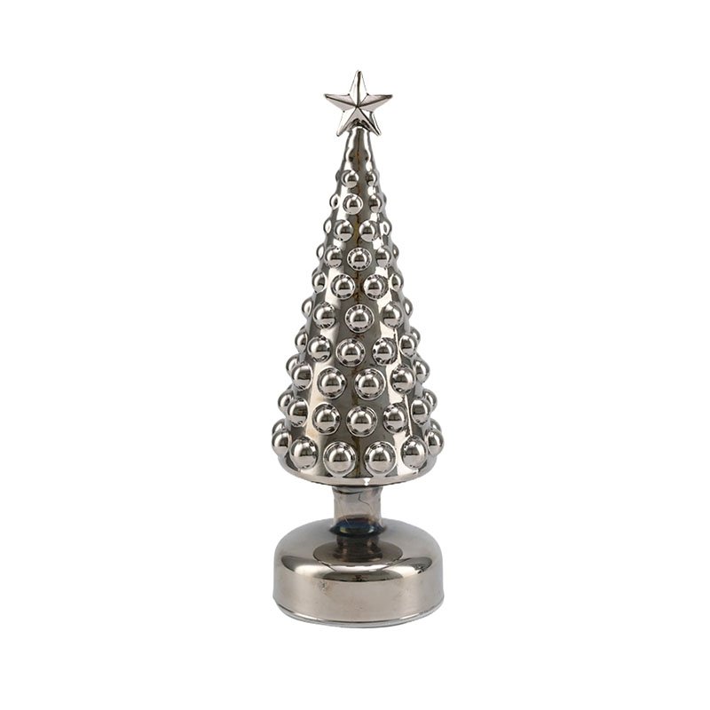 Home - HOME DECOR - Ornament - Modern Luxury Silver Metallic Christmas Tree Ornament with Star Topper – Creative Bobble Textured Tree Figurine for Holiday Home Decor, Elegant Ornaments for Tabletop, Mantel, and Festive Party Centerpiece