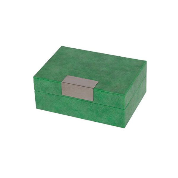 • Versatile Fashion Art Display Transcending Scene Limits-This jewelry box is not only a functional tool but also a decorative art piece that enhances spatial style. It can be placed on an 08-042 green gold-veined marble tray as a color extension or paired with an 08-065 emerald-patterned photo frame to create a decor ambiance reminiscent of vintage cinema on your vanity. Its deep and elegant emerald hue allows it to blend perfectly into modern luxury, business, or industrial-style interiors.