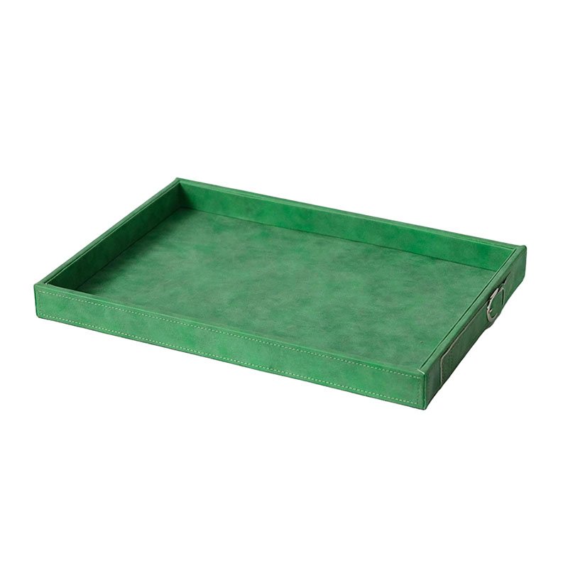 - ★Unique Matte Emerald Leather & Minimalist Rectangular Structure- This PU tray (Item No. 312-132) demonstrates ultimate balance in its visual aesthetics: it features a deep and stable emerald green tone with a high-end matte frosted finish, providing a warm, non-reflective texture that feels as delicate as silk. The tray’s edges are sharp and straight, with exquisite matching color stitching at the four corners for durability and craftsmanship. Polished metal pull rings are cleverly embedded on the sides, not only enhancing the dynamic feel of the tray but also finding a perfect artistic fit between functionality and decorative appeal.