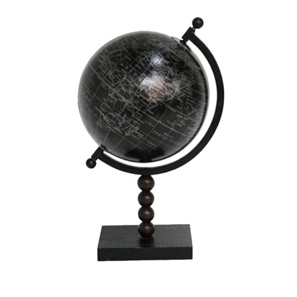 - ★Compelling Monochromatic Aesthetics & Refined Silhouette- This rotating globe adopts a highly contemporary black-and-white color scheme, featuring a deep matte black sphere as the background paired with crisp, eye-catching white world map labels for a cool and rational visual texture. The sphere is mounted on an elegant black arc bracket, connected below by a unique column of four stacked spherical beads, all supported by a solid and stable square black base. This perfect combination of geometric lines and spherical silhouettes, complemented by its fine surface finish, makes it an exceptionally sophisticated tabletop ornament from every angle.