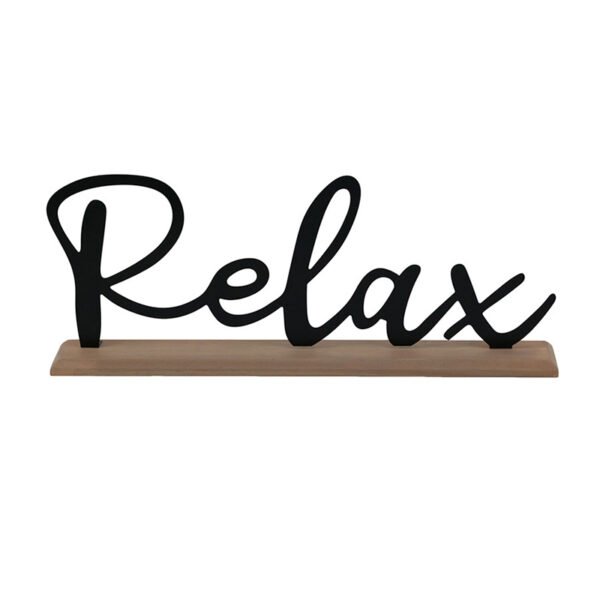 - ★Elegant Script Silhouette & Material Contrast Aesthetics- This decorative piece features a dynamic cursive script design, where the flowing “Relax” lettering is crafted in a single, continuous motion, capturing the unique rhythm and beauty of hand-lettered art. The letters are finished in a deep matte black coating for a sophisticated, modern look, while the base consists of a finely polished, long rectangular wooden block in a natural tone. The contrast between the organic wood grain and the cool black lettering creates a striking aesthetic, making it a highly recognizable tabletop ornament. The overall proportions are perfectly balanced, providing stability without sacrificing a sense of lightness, ensuring it fits seamlessly into various modern interior styles.