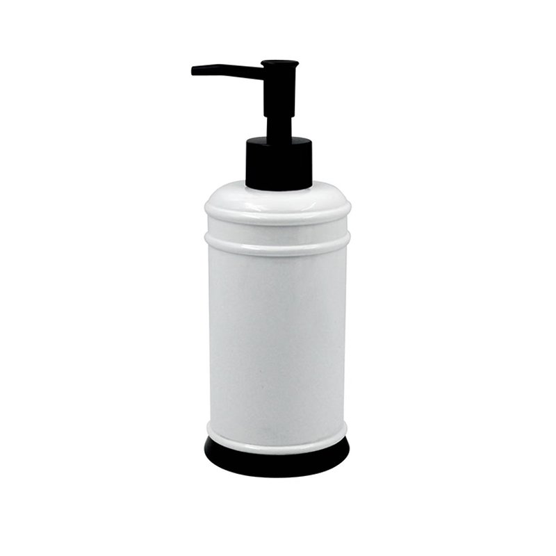 - ★Minimalist Black & White Contrast with Smooth Cylinder: This lotion dispenser features a classic cylindrical silhouette, with the main body displaying an elegant smooth, bright white finish, ensuring a sleek and easy-to-clean appearance. The base and neck feature black circular bands and decorative trim, creating a sharp black and white contrast that is highly designed. The central body has two horizontal groove decorative lines for added visual depth. It is topped with a sleek black long-spout press pump head, maintaining clean, sharp lines overall.