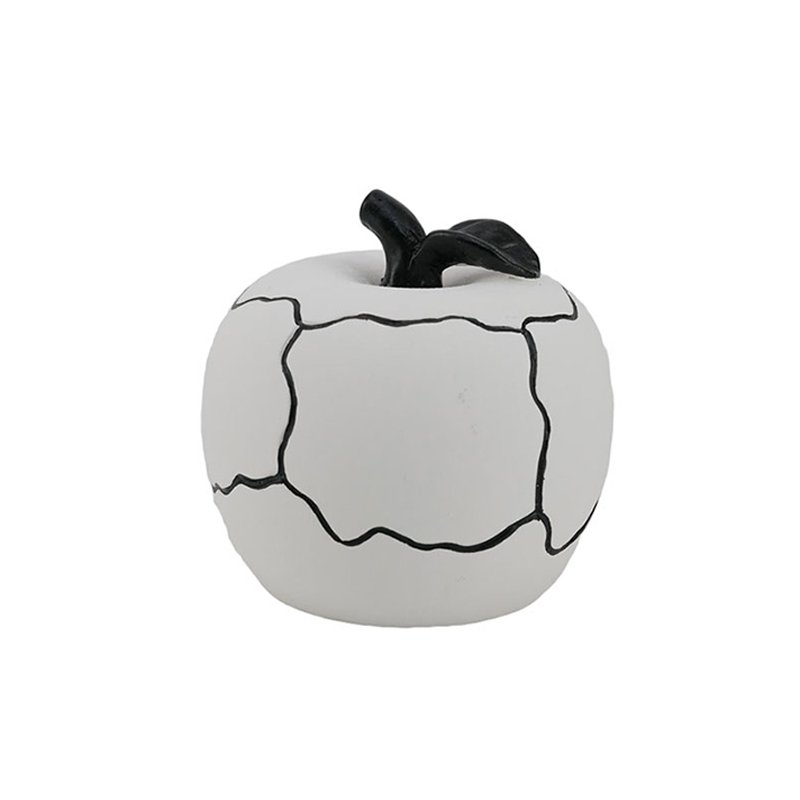 • Unique Artistic Appearance & Black and White- This ceramic apple sculpture showcases a highly artistic modern abstract aesthetic, featuring a premium matte pure white glaze base with a rounded, full shape and a smooth, gentle touch. Its most striking visual feature is the bold, irregular black crackle lines distributed across the surface, appearing as a modern interpretation inspired by traditional “Kintsugi” repair art, creating a powerful visual impact through the strong black-and-white contrast. Topped with a vividly shaped pure black stem and leaf, which contrasts sharply with the white body, it stands as a sculptural tabletop ornament.