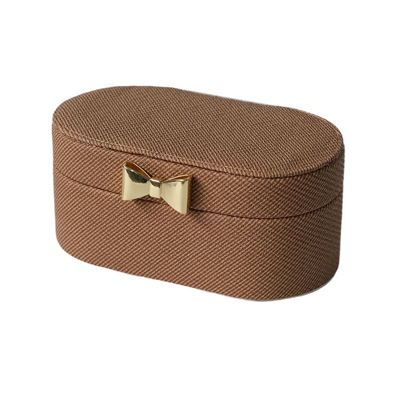 Home - HOME DECOR - Jewelry Box - Modern Minimalist Brown Twill Fabric Jewelry Box, Exquisite Gold Bow Clasp Oval Jewelry Organizer, Portable Mini Jewelry Gift Box for Trinkets, Elegant Home Bedroom Decor & Ideal Gift for Women