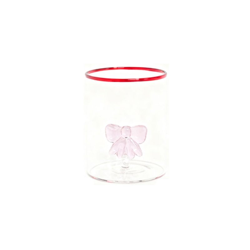 - ★Exquisite Bow-knot Silhouette & Dual-Tone Contrast Design- This glass cup stands out visually with its unique feminine design. Its physical appearance is highly refined: the body is crafted from high-transparency premium glass in a classic cylindrical shape; the rim is cleverly traced with a vibrant red line, injecting a pop of energetic color into the crystalline body. The most striking detail is the 3D pink glass bow-knot accent mounted on the side, which is full and textured, creating a sharp visual layer against the red rim and making it a highly artistic tabletop ornament.