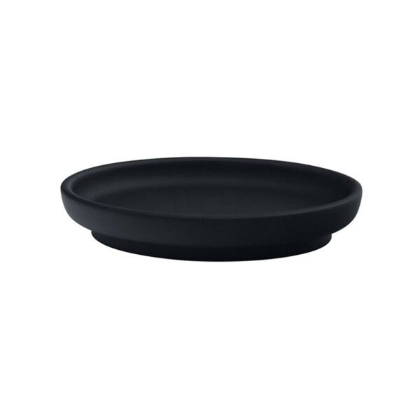 • Minimalist Matte Pure Black Round Dish Silhouette: This soap dish features a classic shallow, circular design, with the entire body showcasing a pure, uniform matte black finish, offering a high-end, understated texture. The dish has slightly raised edges and a non-perforated, gently depressed center to cradle the bar soap. The base is fitted with a narrow circular pedestal that slightly elevates the body, creating a clean, modern, and sculptural look.