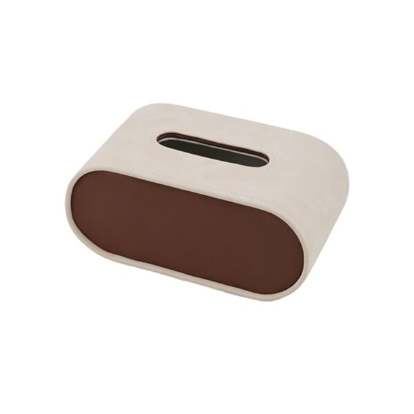 Modern Oval Tissue Box Cover in White and Brown, Minimalist Design with Smooth Rounded Edges, Decorative Ornament for Living Room or Office