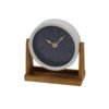 • Elegant Modern Design – This clock combines a sleek black dial with a white round frame and a natural wooden stand, making it both functional and decorative.