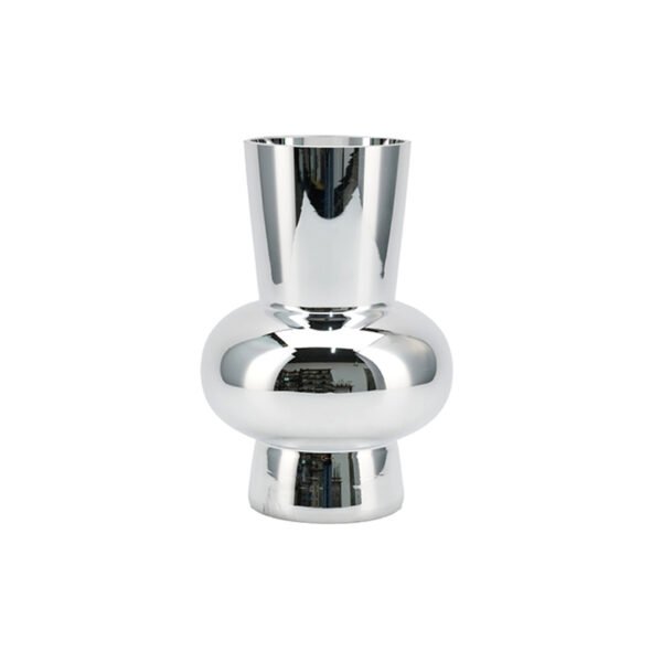 - ★Sleek Silver Mirror Finish – This decorative vase features a highly polished silver-tone surface with a mirror-like reflection, making it an eye-catching centerpiece that adds modern sophistication to any interior.