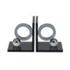 Modern Silver Ring Bookends, Geometric Circle and Sphere Design on Glossy Black Base, Elegant Decorative Ornament for Shelves, Luxury Home Decor Book Holder
