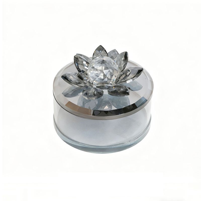 - ★Captivating Appearance & Pure Crystal Aesthetics- This artistic organizer showcases highly transparent modern visual art, crafted from high-quality clear glass to present a visual effect as pure as a glacier. The lid is ingeniously topped with a blooming crystal lotus; its petals feature multi-faceted cutting craftsmanship, allowing it to capture and refract light from all angles for a dazzling luster. The cylindrical body offers a sleek yet elegant silhouette, while the lid edge is highlighted by a sophisticated metallic silver trim; this contrast between transparency and metallic texture imbues this crystal jewelry box with a sacred and noble artistic aura.
