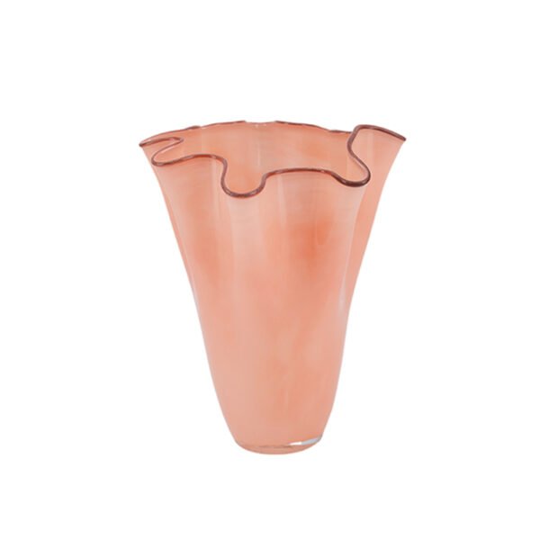 Elegant Pink Glass Vase with Wavy Rim, Decorative Flower Vase for Home, Office, Wedding, or Centerpiece
