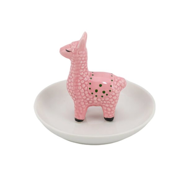 - ★The LJ00-137-151 pink llama ceramic jewelry dish features a round white base with a playful design. Measuring 11.8 x 11.8 x 9.5 cm and weighing about 0.204 kg, it is ideal for holding rings, earrings, necklaces, or keys, keeping your space neat while adding a touch of charm.
