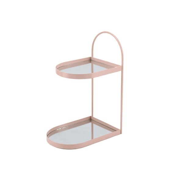 Home - HOME DECOR - Jewelry rack - Two-Tier Pink Metal Jewelry Rack with Mirrored Trays – Decorative Organizer for Vanity, Bathroom, and Desktop