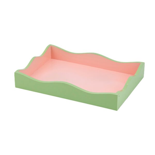 Decorative Tray with Wavy Edge Design, Green and Pink Color, Multipurpose Storage or Serving Tray – Model