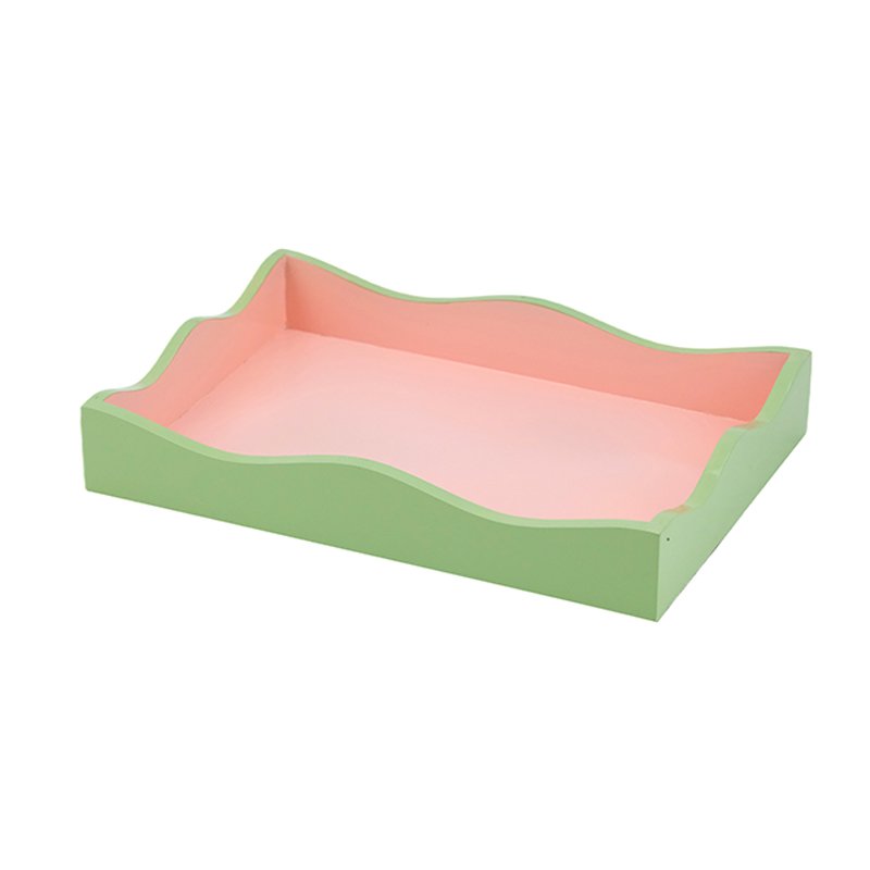 Home - HOME DECOR - Tray - Decorative Tray with Wavy Edge Design, Green and Pink Color, Multipurpose Storage or Serving Tray – Model