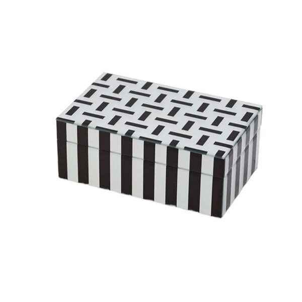 Home - HOME DECOR - Jewelry Box - Rectangular Black and White Stripe Glass Jewelry Box with Mirrored Lid, Elegant Jewelry Box Packaging for Rings, Earrings, and Accessories