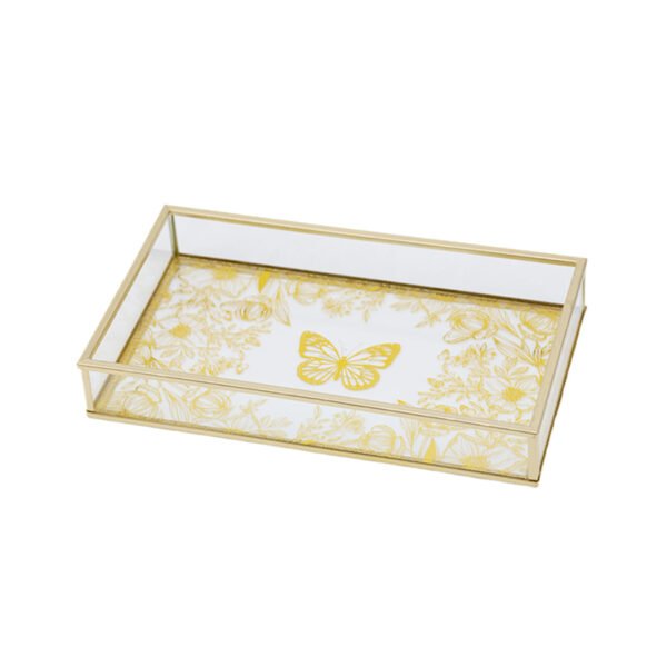 Rectangular Glass Jewelry Tray with Golden Butterfly Pattern, Elegant Decorative Tray for Bathroom, Bedroom or Living Room