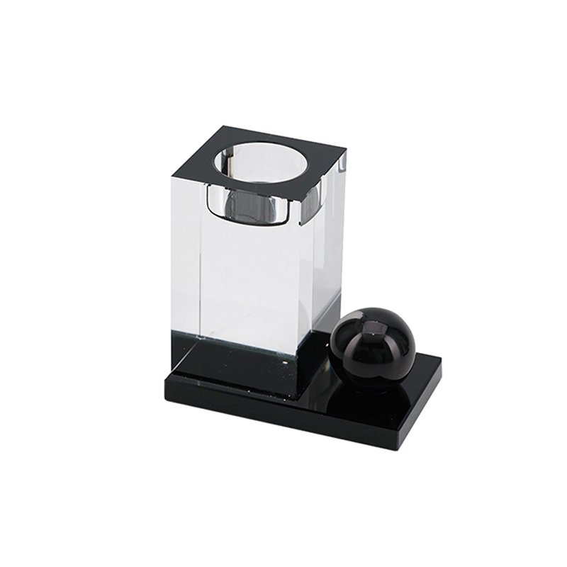 • This elegant candle holder is a must-have crystal candle holder, featuring a unique cube-and-sphere structure that adds a touch of avant-garde style to any room.