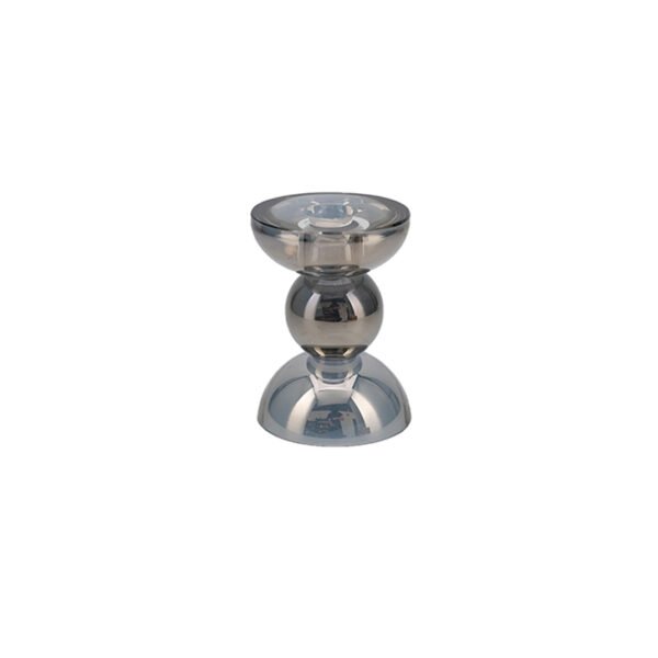 Small Silver Glass Candle Holder with Double Sphere Stacked Design, Reflective Metallic Finish Decorative Candlestick Holder for Home and Events