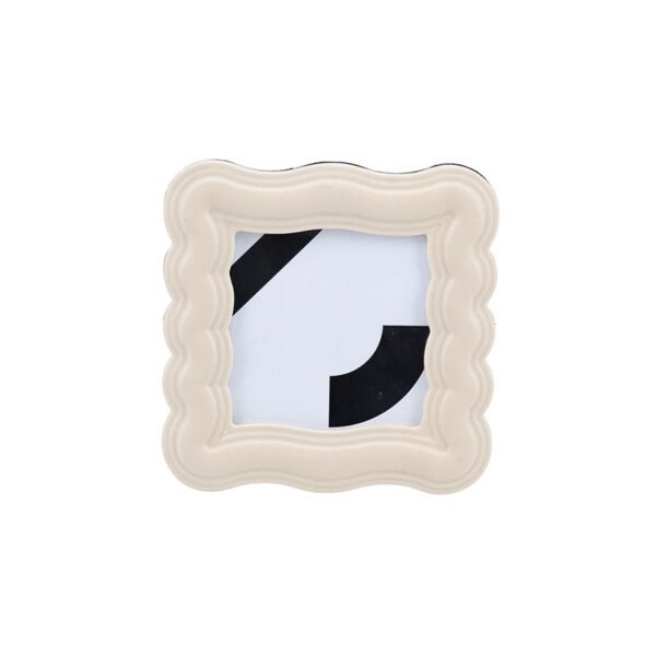 - ★This is a square photo frame with wavy, scalloped edges, featuring a soft beige color that gives a simple yet warm appearance. Perfect for displaying photos or artwork on a desk, bedside table, or living room. Code LJ124-137-035, size 16.3×1.5×16.3 cm, weight 0.316 kg.