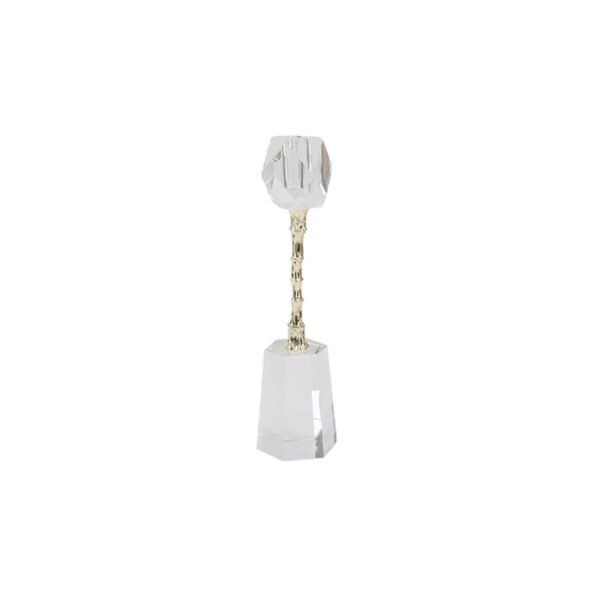 small-sized Clear Crystal Candle Holder with Gold Metal Base, Tapered Candle Stick Holder for Home Decor & Holiday Use