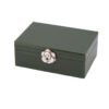 Dark Green Jewelry Box with White Camellia Lock, Rectangular Storage Box for Rings, Earrings, Necklaces