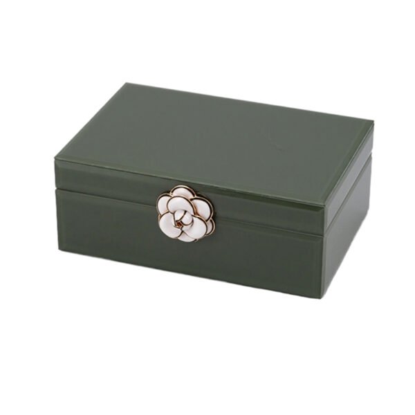 Home - HOME DECOR - Jewelry Box - Dark Green Jewelry Box with White Camellia Lock, Rectangular Storage Box for Rings, Earrings, Necklaces