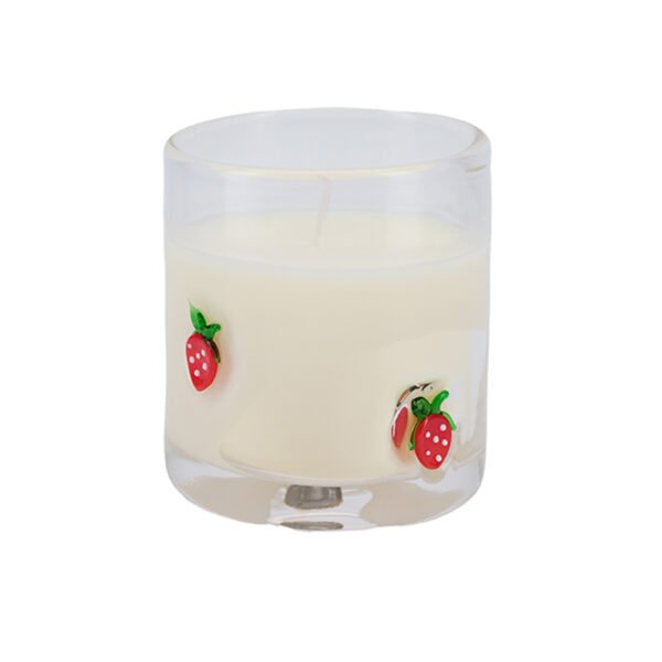 Strawberry – Decorated Clear Glass Candle Holder with Cream Candle, Glass Candle Stick Holder for Home Decor
