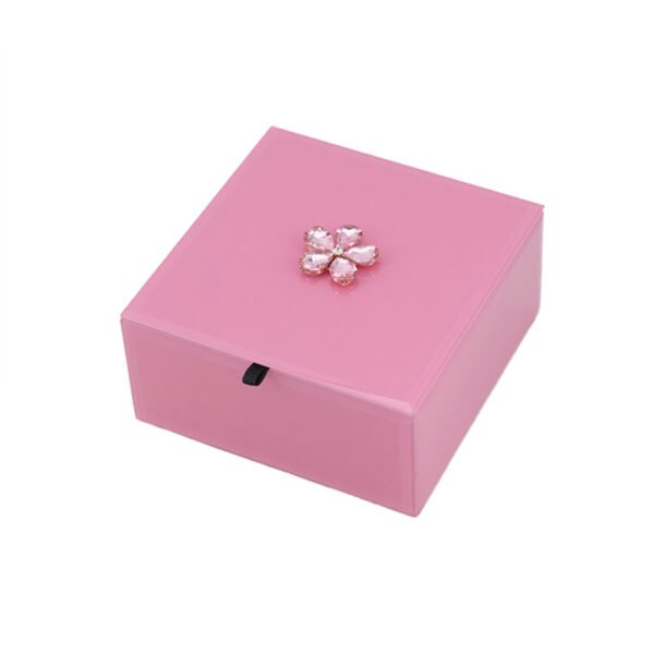 - ★Exquisite Design- This glass jewelry box features a vibrant pink finish with a delicate crystal flower accent, offering elegance and charm to your vanity or desk.