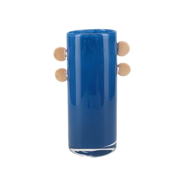 Home - HOME DECOR - Vase - Tall Blue Glass Vase with Wooden Handles, Contemporary Cylinder Flower Vase Home Decor, Modern Vases Glass for Table or Shelf Display