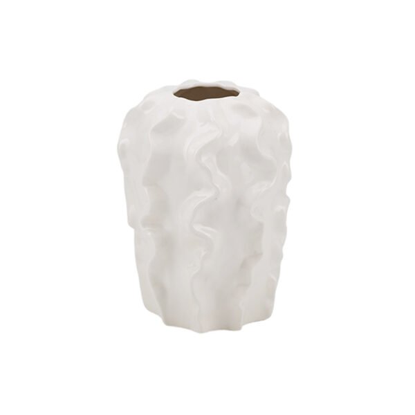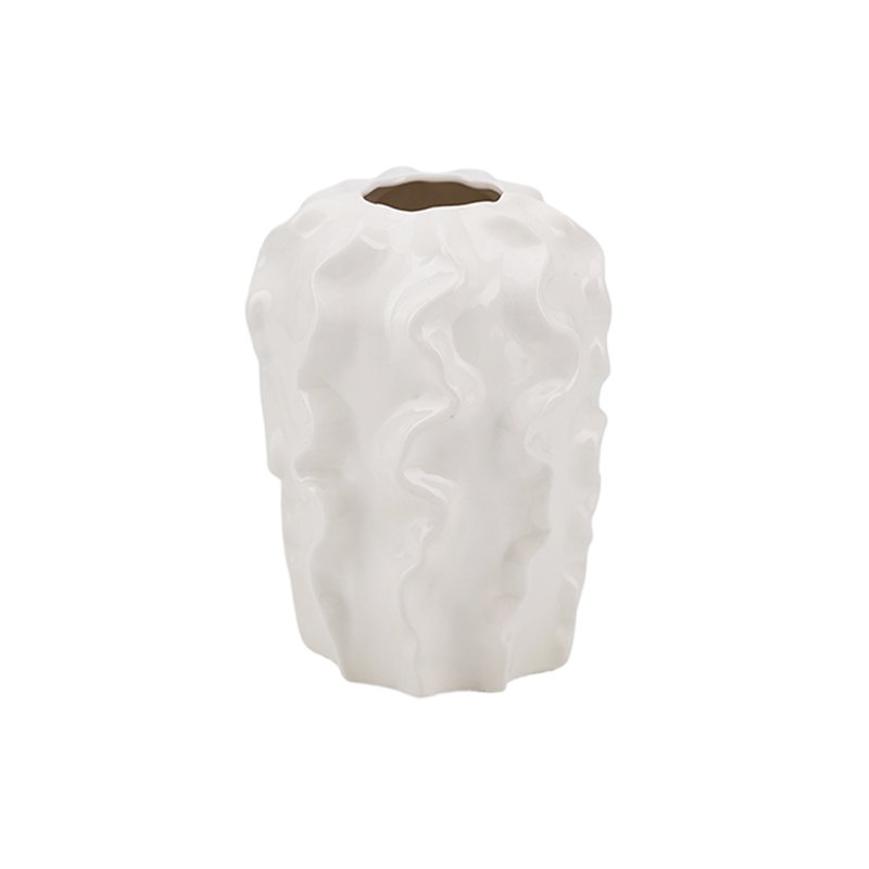 Home - HOME DECOR - Vase - Tall White Ceramic Shop Spring Vase with Abstract 3D Carved Texture, Sculptural Flower Vase for Modern and Contemporary Interiors