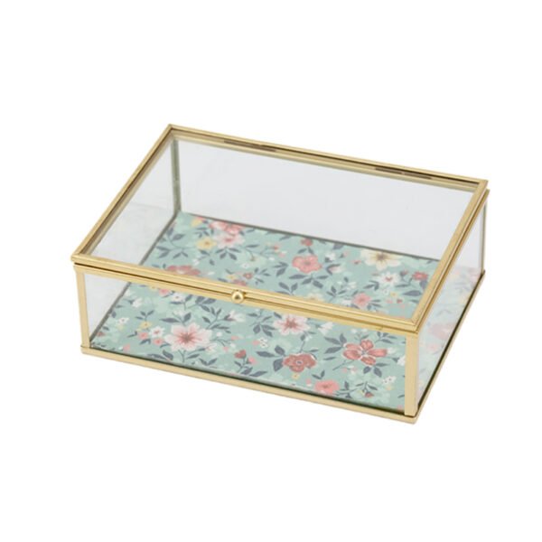 Rectangular Glass Jewelry Box with Gold Metal Frame and Transparent Panels, Floral Patterned Base Decorative Box Jewelry Boxes, Elegant Jewelry Box for Women
