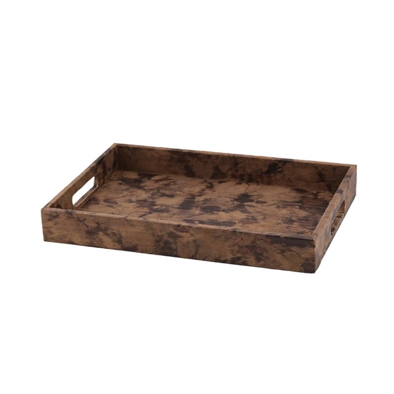 Home - HOME DECOR - Tray - Vintage Wooden Grain Rectangular Tray, Classic Brown Finish, Open Handle Design, Perfect for Tea, Coffee, Snacks, or Jewelry Tray Storage