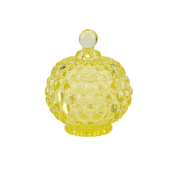 Home - HOME DECOR - Jewelry Box - Vibrant yellow Textured Glass Candy Jar with Lid, 9.8×9.8×11.3cm Decorative Bubble – Patterned Glass Storage Container for Home & Kitchen